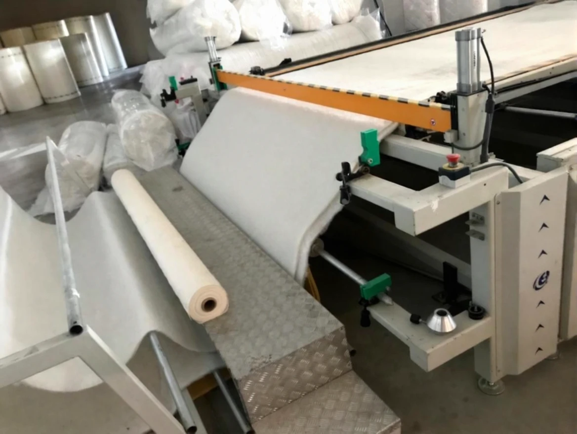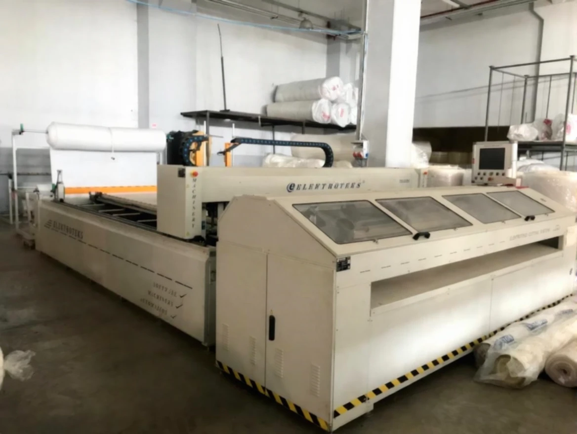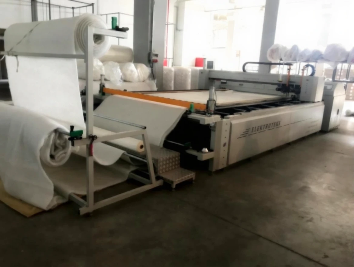 It performs all processes of feeding with motorized rollers, quilt sewing, and fabric cutting for duvets.