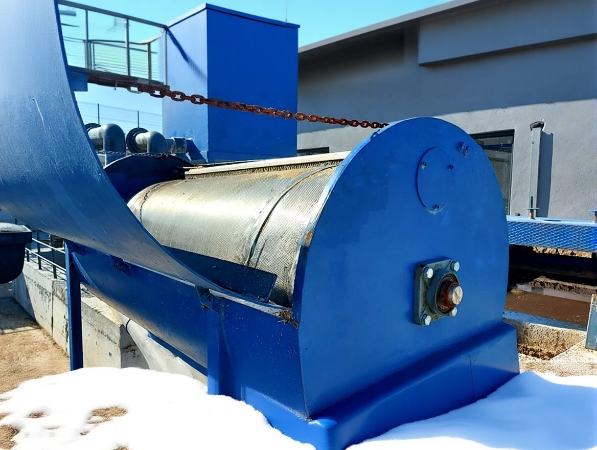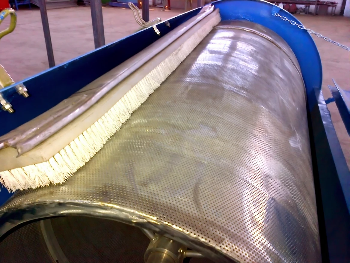 Fine screens with a rotary filter type, also known as drum filters, are equipment used for very fine separation (250-2000 microns). Water and wastewater flow into the cylindrical screen surface, where solid materials are retained inside the screen and collected by a surface cleaning system to be sent to the collection chamber.