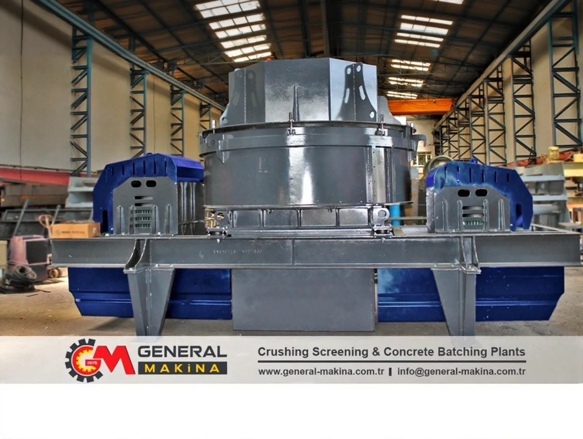 General Makina vertical shaft crushers are crushers used to obtain sand and gravel by crushing all kinds of medium-sized hard abrasive materials used in the mining and construction sectors. They are used to obtain 0.5 mm sand and gravel. They are crushers with high sand ratio and cubic ratio. Spare part costs are quite low and they are a low-cost crusher type.