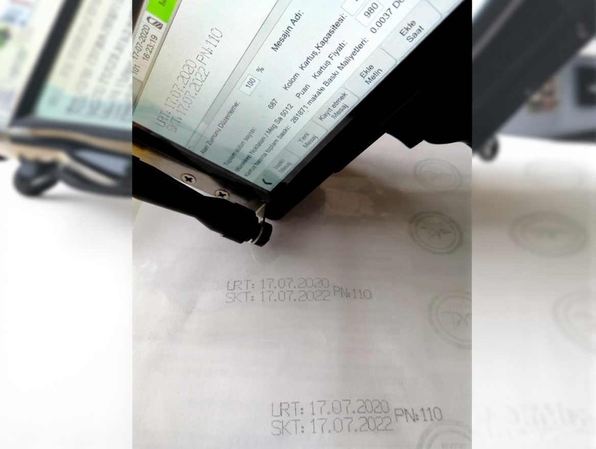 - Ability to Print on All Surfaces: Production Date (ÜRT), Expiry Date (SKT), Batch No (P.NO), Logo, Barcode, QR Code