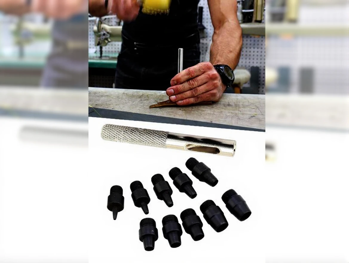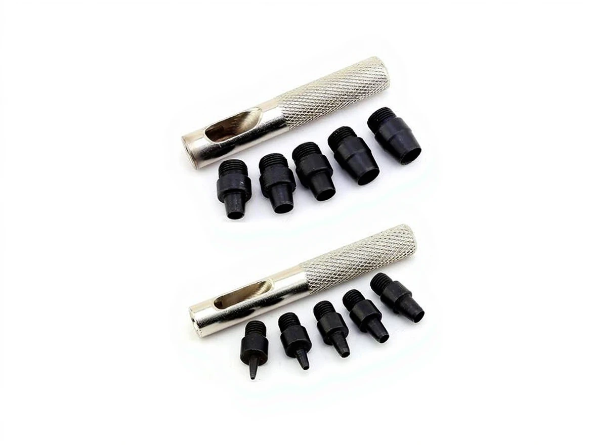 This 2-piece hole punch set is designed to create clean and precise holes on surfaces such as bags, belts, shoes, leather, fabric, cardboard, and more. Its durable metal construction and ergonomic hand-held design ensures easy use in any environment.