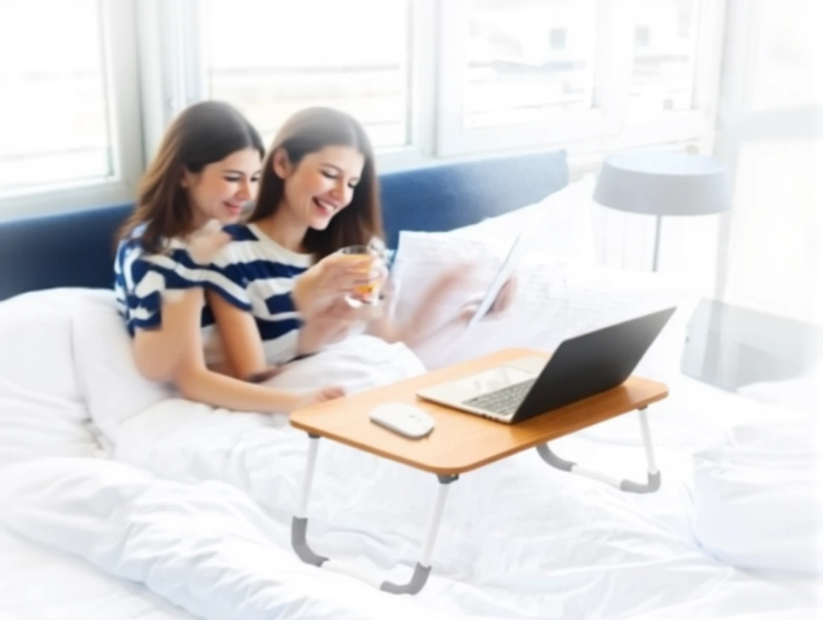 For reading books and eating meals on the bed.