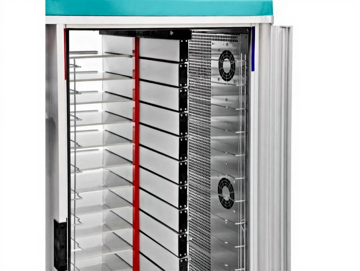 EMP.MED.S.24-1/3 1/3 24 Tray Thermo Cabin Hot – Cold Food Transport Cart is a practical and durable solution designed for the safe transportation and temperature control of meals, especially in hospitals, clinics, and other healthcare institutions. This device stands out with its special design that offers great convenience to the user. Its compact structure allows for easy transportation and use even in limited spaces. These carts can be easily arranged side by side or back to back, saving space in businesses and providing great flexibility during transportation.