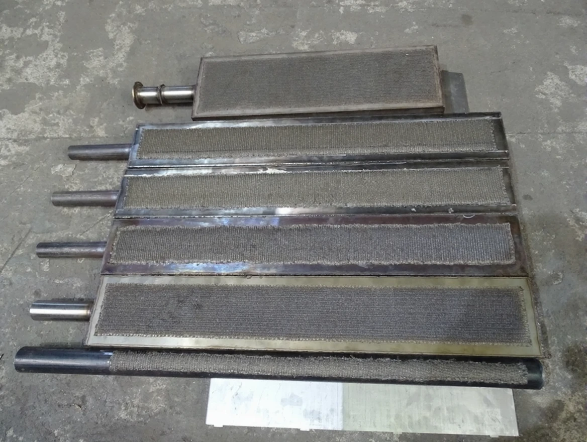 The Melimex INF 2000 is a burner system made from premix mesh, operating with a natural gas and air mixture. It functions under 21-50 mbar pressure and can be manufactured in various sizes and capacities ranging from 28 kW to 1000 kW. It is widely used in pita, lavash, and phyllo ovens, roasting machines, powder coating facilities, enclosed space heating, and industrial heating applications.