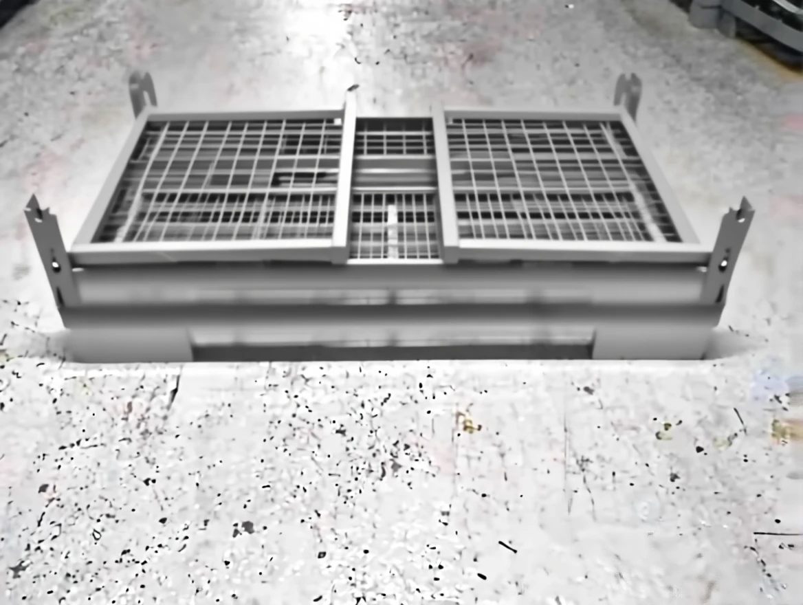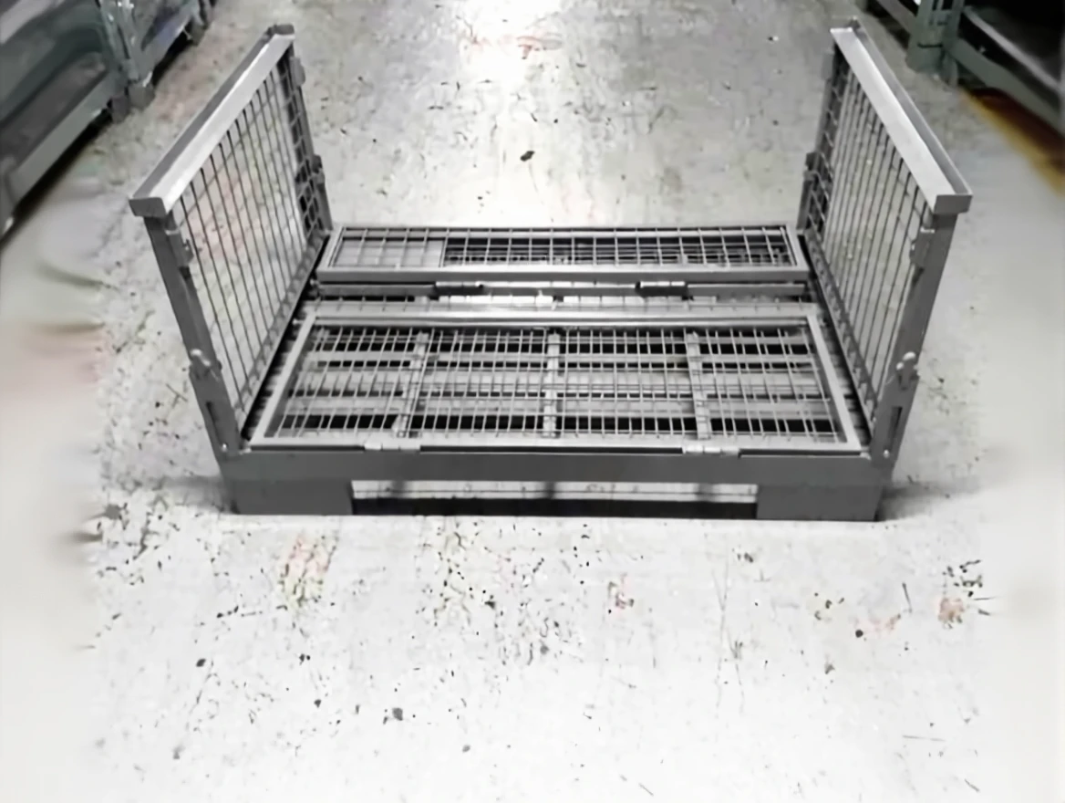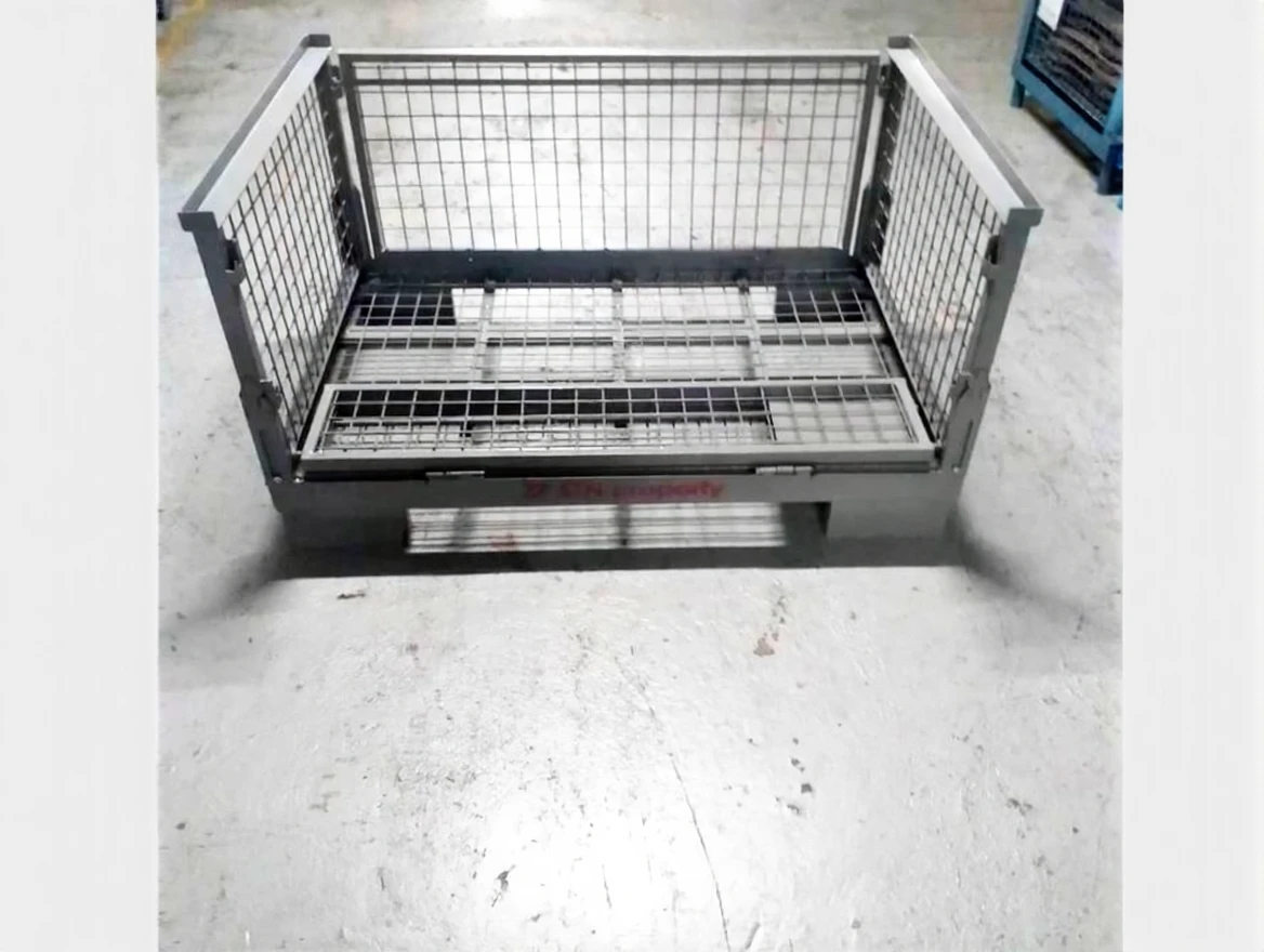 Foldable metal pallets enable products to be carried safely. When they are stood in the stock area, they take up little space because they fold. You can ship your serial machined parts with this pallet and then take the pallets back.