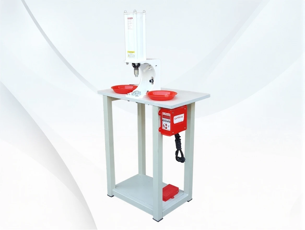 The machine operates with a pressing technique. It performs the snap pressing process through the pedal by placing the snaps in the lower and upper chambers of the machine using the machine’s pressure power.