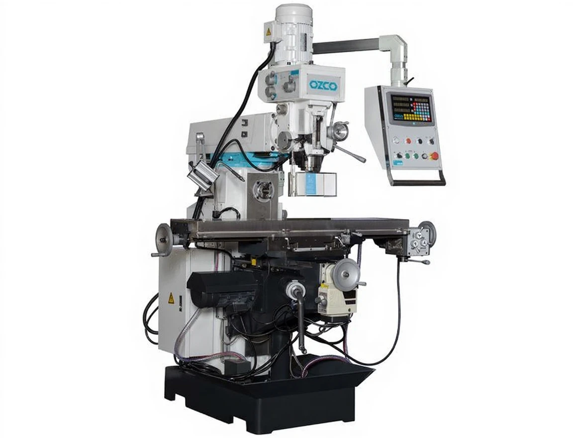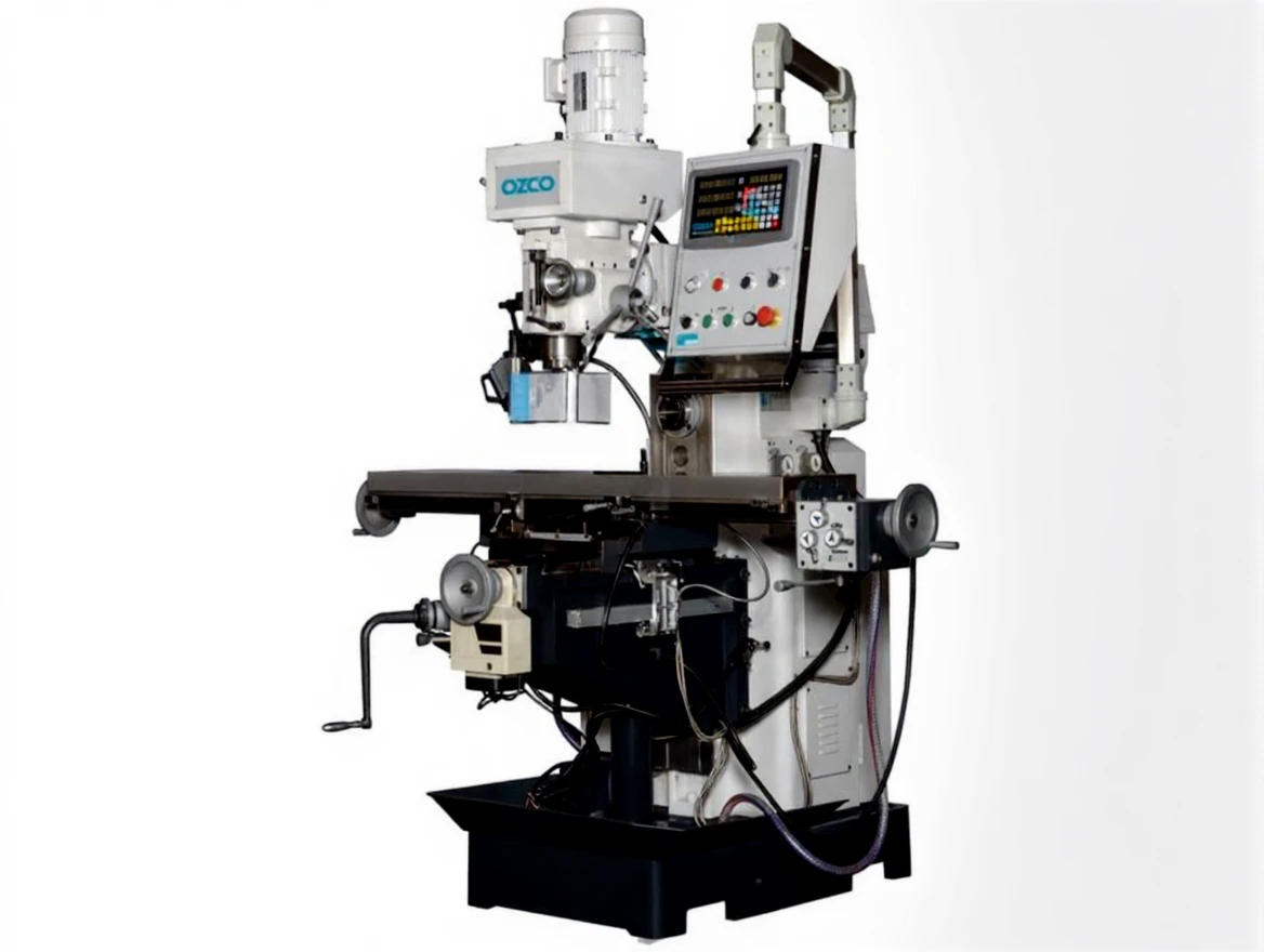 3-axis automatic, 3-axis digital coordinate reader, Control panel, Height-adjustable safety switch guard, Cooling system, Lighting, Chip collection tank, CE compliant.