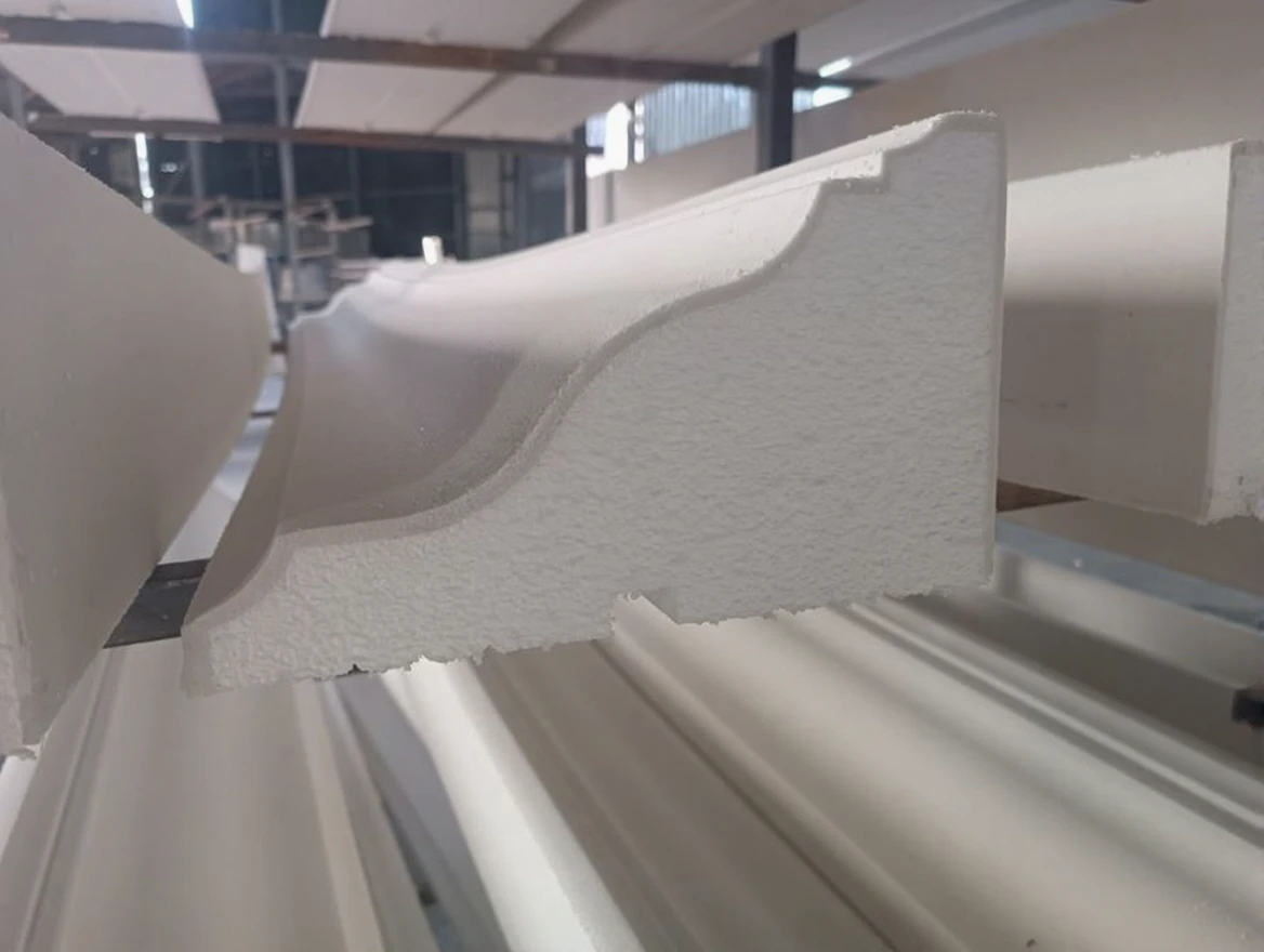 With the cornice coating machine, the exterior styrofoam material is coated automatically with full control. The motor control can be adjusted to desired speeds by using a powerful inverter.