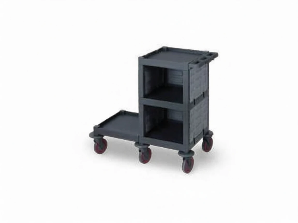 Designed for professional cleaning jobs, thisPlastic Cleaning Material Trolley,Dimensions 53x110x100 cmAndWeighs 17.3 kgIt has a light but durable structure. Its sturdy plastic body offers long-lasting use and ensures safe transportation of cleaning materials.