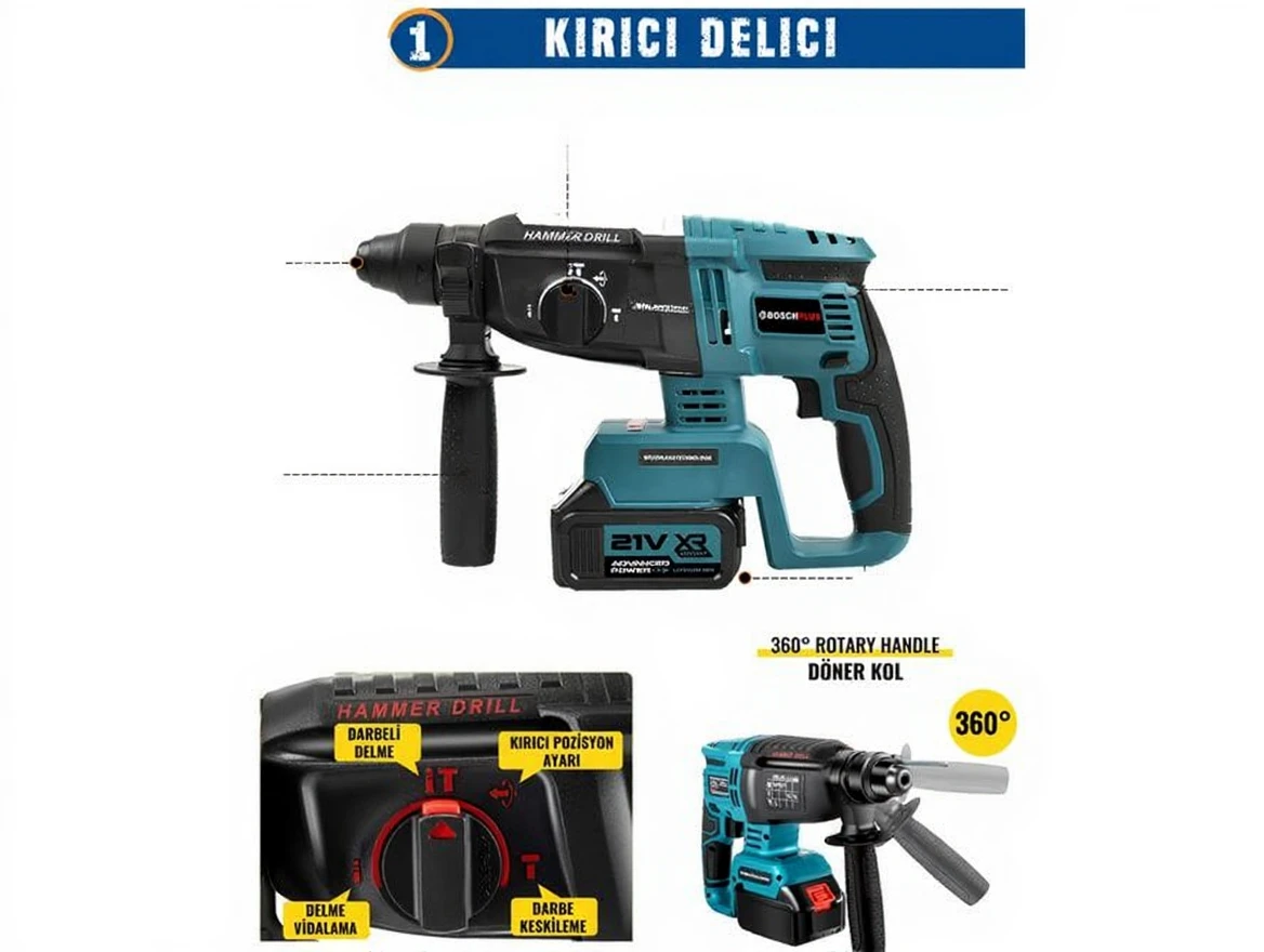 Featuring a cordless motor structure, this set offers long-lasting use with 3 batteries and 1 fast charger allowing you to easily complete all your tasks.