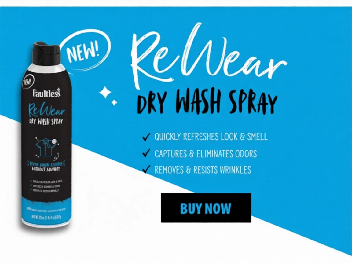 Faultless Rewear Dry Wash Spray is perfect for unexpected situations at the office, school, and many other places. Simply spray it on your clothes after unexpected situations, and it will remove wrinkles and refresh your garments for a crisp look.