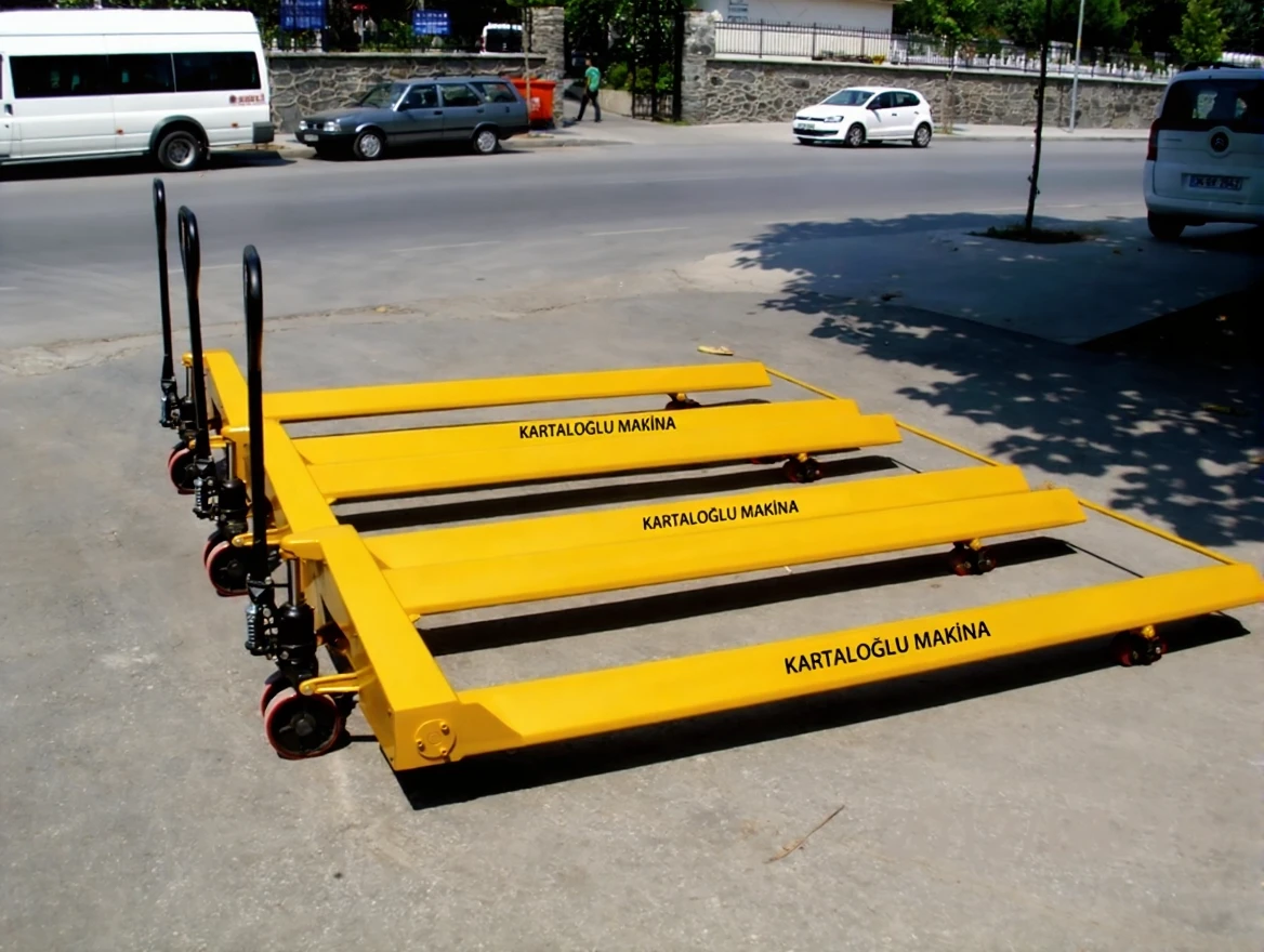 Kartaloğlu Machinery is a high-performance and durable transport vehicle designed for the transportation of heavy roll fabrics in the industrial fabric and textile sector. This manual pallet truck is ideal for use especially in factories, workshops, and warehouses.