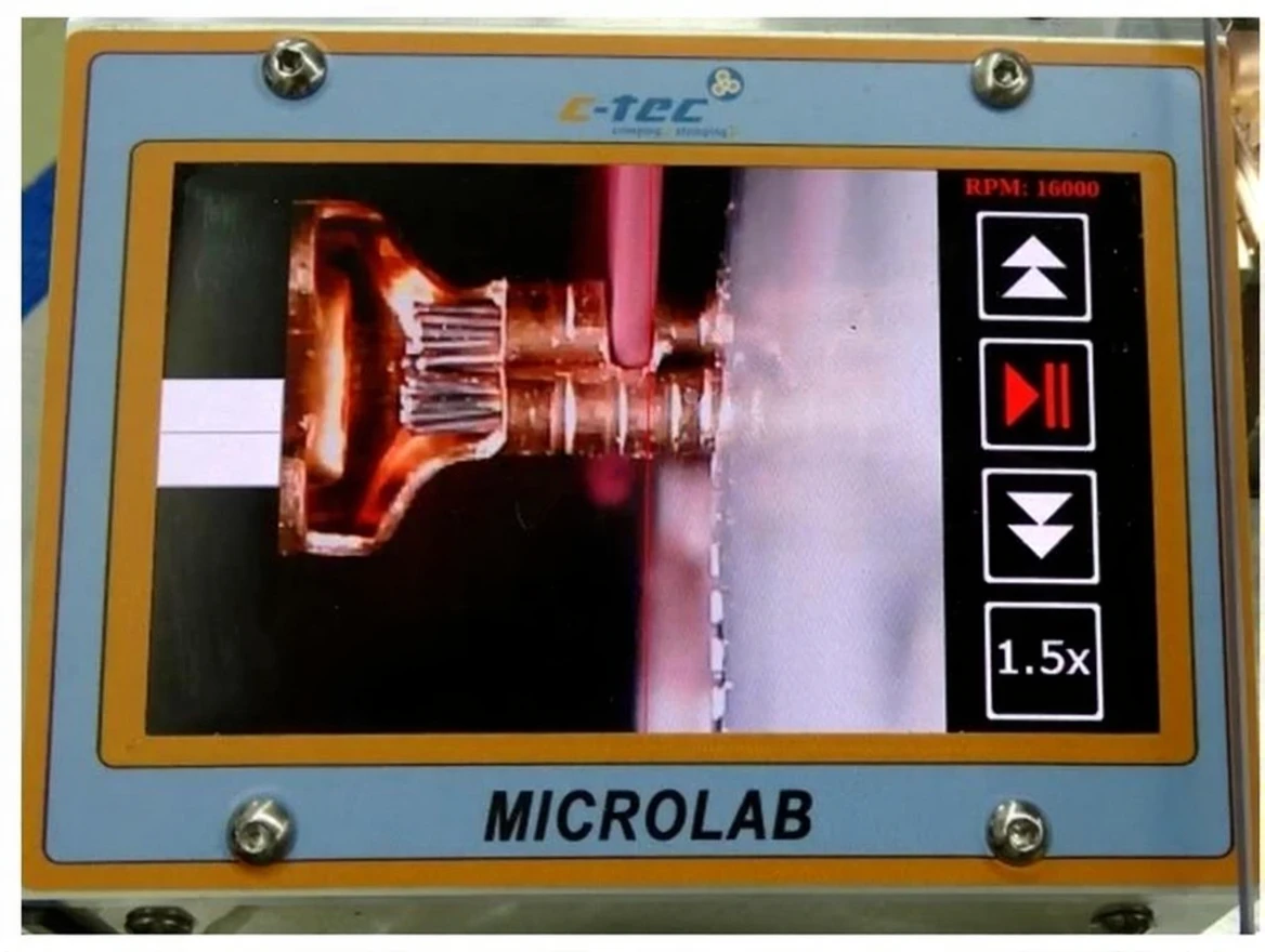It can be easily mounted on a bending holder (sample holder). After placing the holder on the slide and turning on the motor, it can be precisely moved to the cutting wheel and then to the grinding disk. The cutting and grinding speed can be adjusted with a potentiometer. The position between the bending and grinding surface can be changed with a button on the slide.