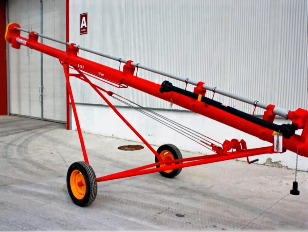 "Electric Motor Driven Auger Conveyors" operate with 380 volts of electrical energy. The electric motor transfers the motion to the auger blade through the first belt pulley system, the trans shaft, and the second belt pulley system. As the blade rotates, the suction port at the rear of the pipe draws the product in, and the discharge port at the front allows for transportation, loading, and stacking to the desired location. These augers are used by TMO, TİGEM, Agricultural Credit Cooperatives, Trakya Union Oil Seeds, Grain Traders, Screening Facilities, and Farmers.