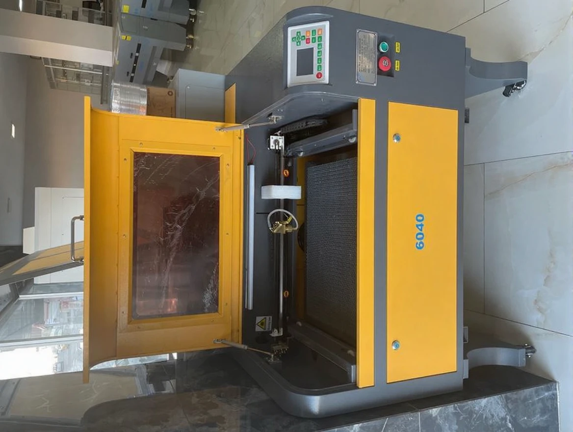 Our machine is in 60-80 W power, 60*40 cm working area. It has a Ruida program. CW3000 cooler is available.