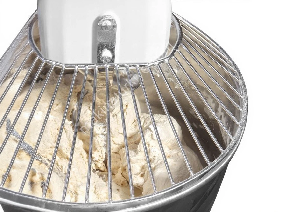 The machine's timer-controlled control panel allows the user to adjust the dough kneading time as desired. This way, the consistency of the dough is exactly as you want it. The automatic stop switch feature when the lid is opened increases safety and prevents accidents. Additionally, the emergency stop button ensures that the machine stops immediately in any emergency situation, thus always providing a safe usage opportunity.