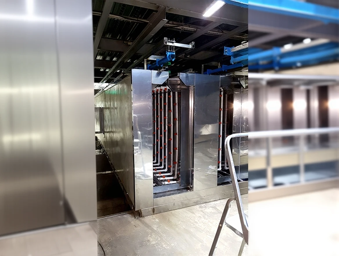 The purpose of Spray Washing Lines is to achieve successful painting processes by cleaning materials to be painted from all kinds of external factors to ensure good adhesion. This process ensures that the painted materials are resistant to environmental conditions and oxidation. By considering the dimensions, properties, and capacities of the materials to be painted, spray or immersion type systems are applied, providing an average of 250/hour for iron phosphate surfaces and 500/hour for zinc phosphate surfaces in terms of acid-salt testing.