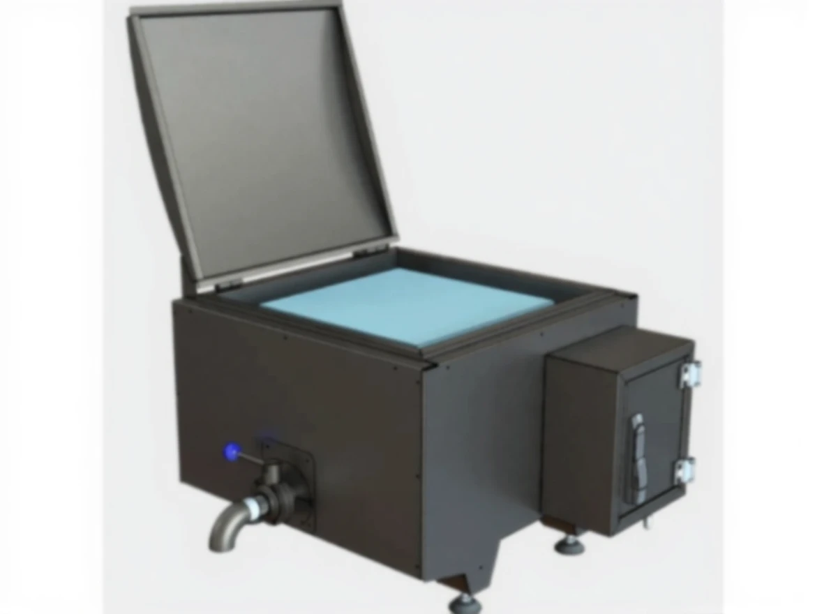 Glass wool insulated rectangular reservoir.