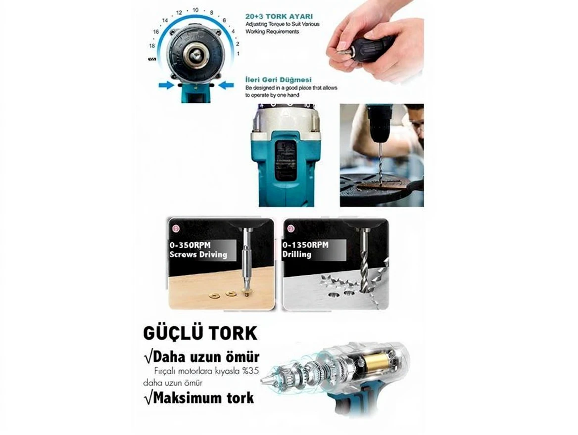 58Vf 5Ah Çelik Gövde Çelik Şanzıman Bakır Sargılı Şarjlı Vidalama Matkap
