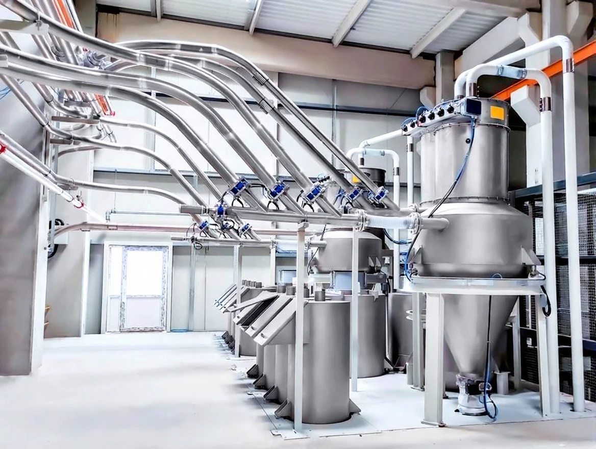 Products can be smoothly transported from bunkers, silos, or bigbag unloading units to target points on the production line.