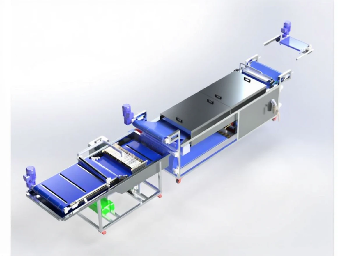 - With the blades mounted on the modular belt, the boiled and cooled dough is portioned into desired sizes.
