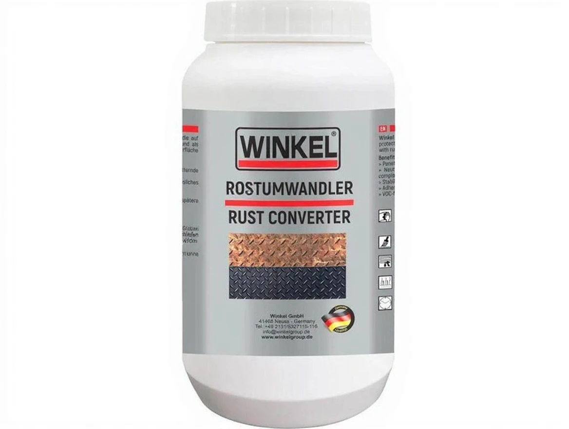 WINKEL Rust Converter is a high-performance coating that works effectively on rusty steel surfaces, penetrates the surface, stabilizes iron oxides, and forms a non-water-soluble metal-organic layer.